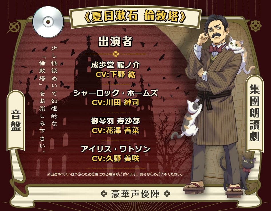 イーカプコン No Twitter 大逆転裁判2 歓 天 喜 地ッ イーカプ限定版グッズ 集團朗讀劇 夏目漱石 倫敦塔 音盤 は 漱石 が留学中に見物したロンドン塔の感想をもとに描かれた少し怪談めいたお話 倫敦塔 の 豪華声優陣による朗読cdです カナ 大逆転2