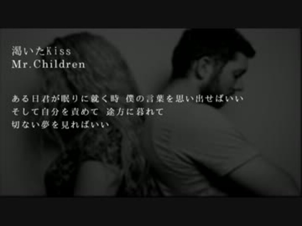 Mr children 渇いたkiss 音楽 10th album it s a wonderful world よりmylist 40296395. Mr childrenの 渇いたkiss 歌詞ページです 作詞 kazutoshi sakurai 作曲 kazutoshi sakurai 歌いだし 生温い空気がベッドに沈黙を 歌ネットは無料の歌詞検索サービスです. Mr childrenさんの 渇いたkiss 歌詞です うたまっぷ 歌詞の無料検索表示サイトです 歌詞全文から一部のフレーズを入力して検索できます 最新j pop曲 tv主題歌 アニメ 演歌などあらゆる曲から自作投稿歌詞まで 約500 000曲以上の歌詞が検索表示できます 作詞スクールの開講など.